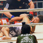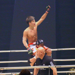 アームトライアングルチョークで一本勝ちした那須川(右)
