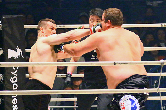 バルト(右)にKO勝ちし決勝戦へ進出したミルコ(左)