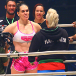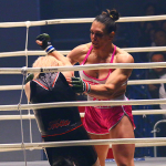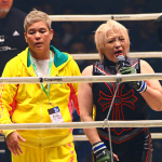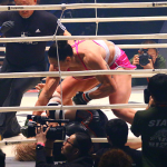 ギャビ(右)が堀田(左)に1RTKO勝ち
