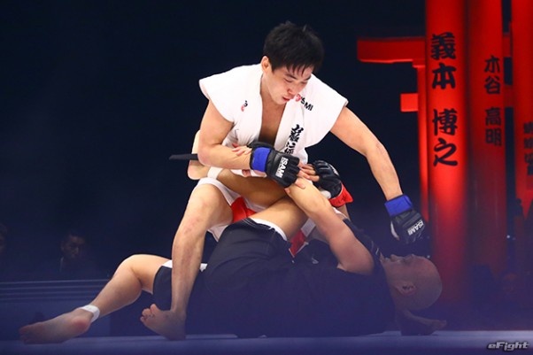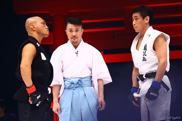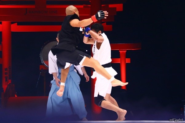 1R開始と同時に渡辺(左)はミンス(右)に飛びかかる