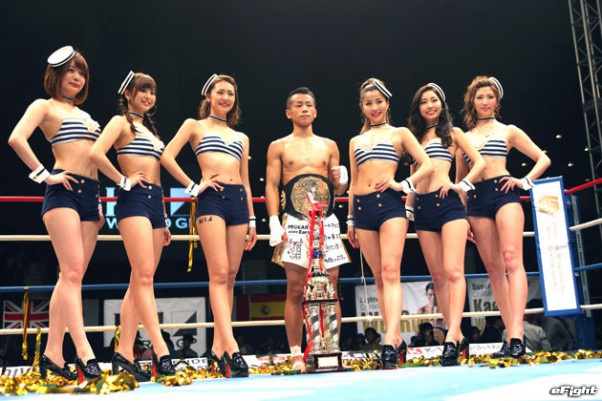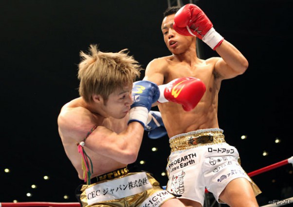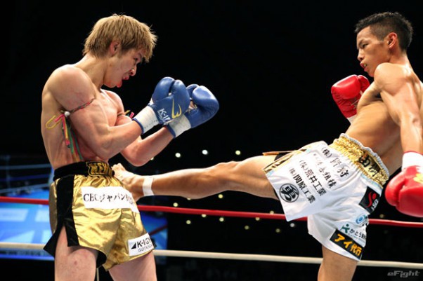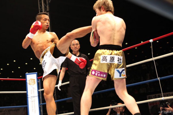 プロボクシングからK-1に戻ってきた久保(左)をパンチで技術で圧倒する武居(左)