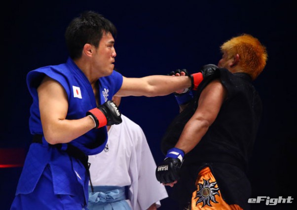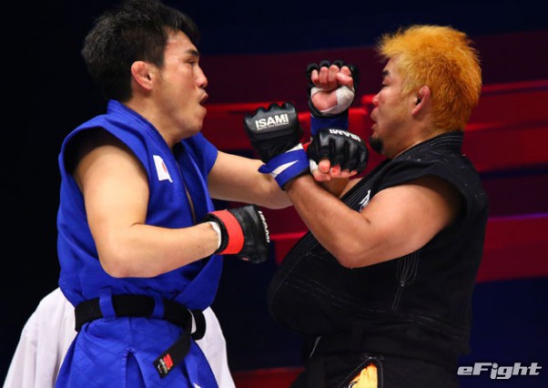 打撃戦で勝負した近藤(右)の右ストレートがヒット