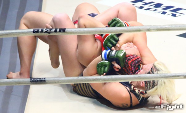 ダンドーワ(右)がレイナ(左)にMMA初黒星を付けた