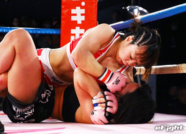 青野(上)がパウンドのラッシュを仕掛け勝利した