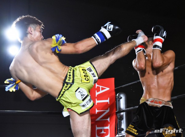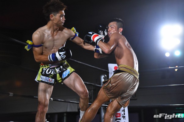 祥梧(左)が伊仙町(右)から2度のダウンを奪いKO勝利