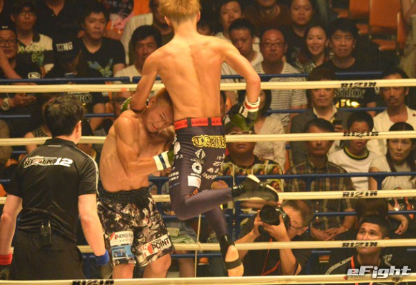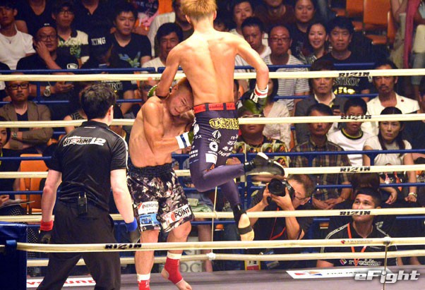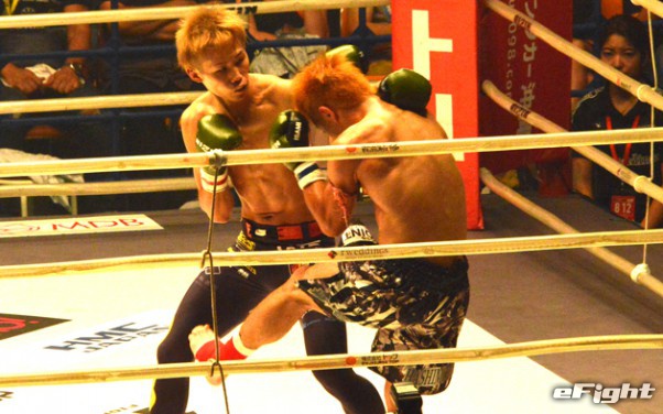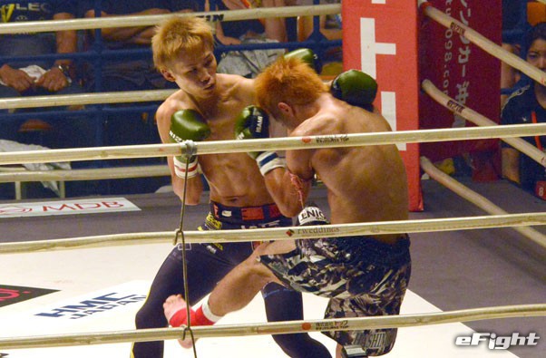 逆転KO勝ちした内藤(左)
