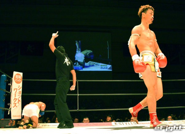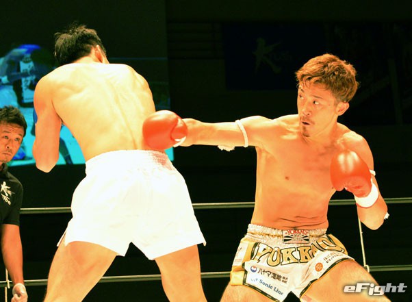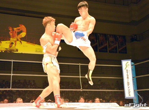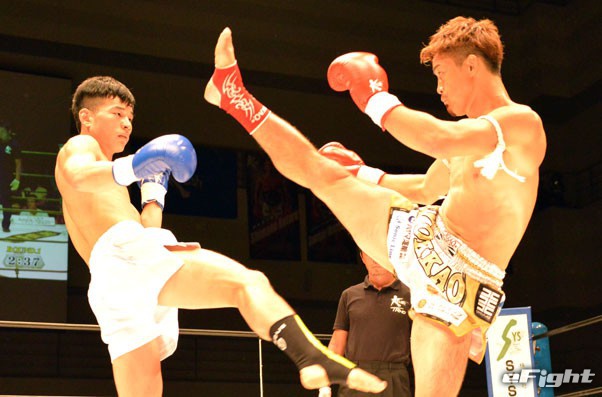 ジェンホイ(左)のパンチをもらった場面もあった大和(右)だが、最後はボディブローの一撃でKO