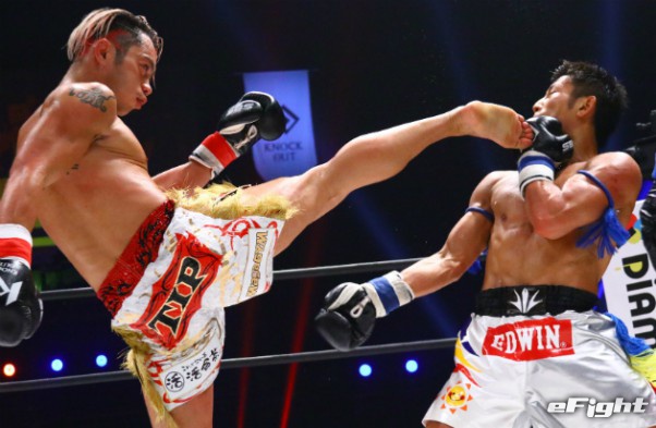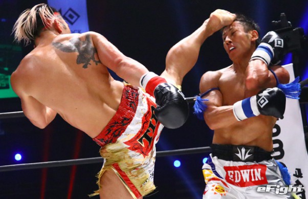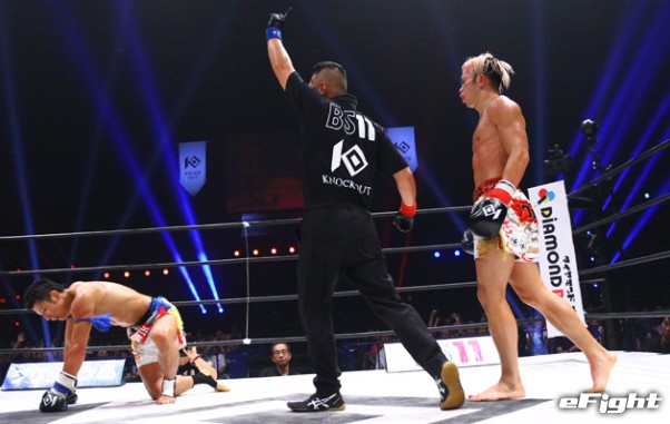 不可思(左)がKING OF KNOCK OUT初代スーパーライト級王者に