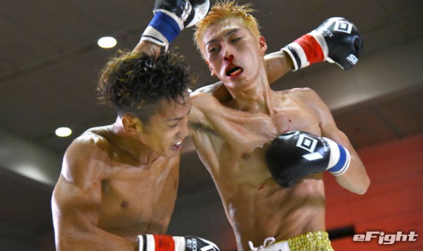 多彩な技を上中下に振り分けていった高橋(右)の右ハイキック