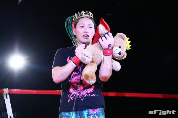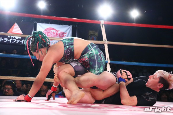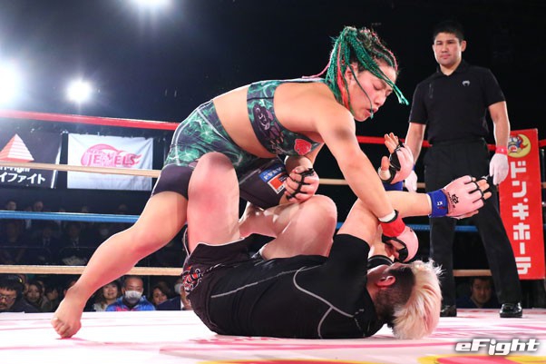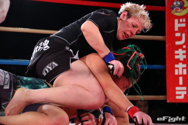 パウンドでジュディー(下)を追い込むKINGレイナ(上)