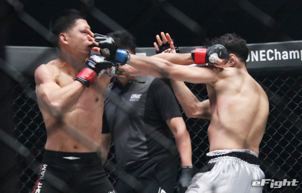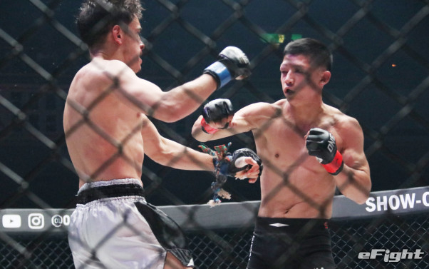 2R、3Rと打ち合いながらも追い上げを見せた秋元(左)だったが逆転ならず