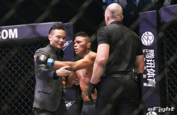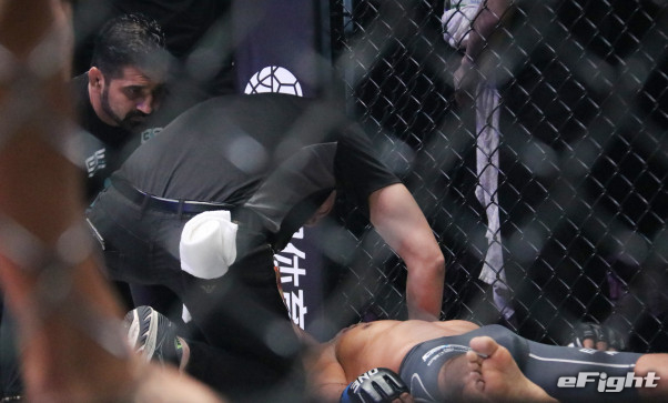 反則を行ったベリンゴンに抗議をするビビアーノ