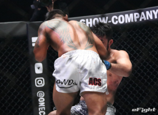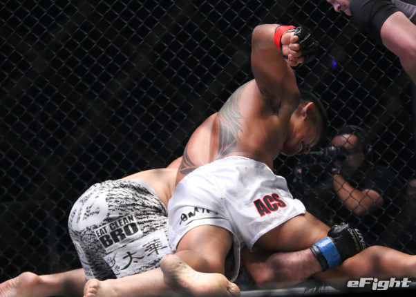 ンサンの右ストレートがヒットし崩れ落ちる長谷川