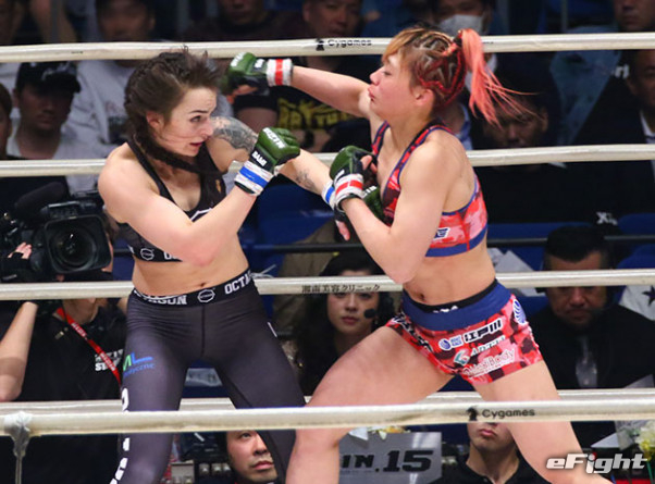 渡辺華奈(右)が熱戦に勝利、無敗記録を伸ばした