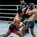 お互いパンチ、ヒジの打ち合いとなった