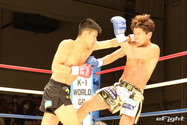 朝久(左)は多彩な攻撃で山本を圧倒