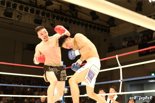 木村がダウンを奪われたあとパンチの猛攻でダウンを奪い返す