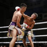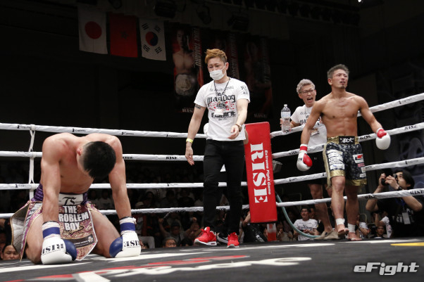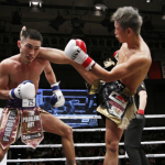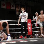 延長ラウンドで2-1で負けた篠塚はリングにうなだれた
