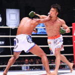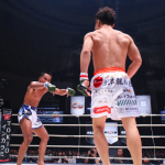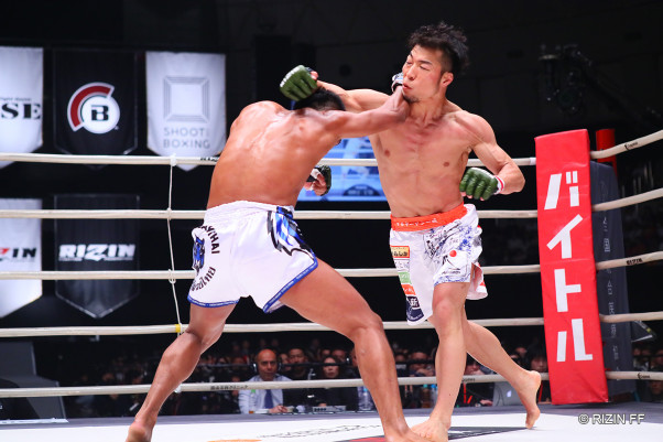 パンチで前に出て行く中村優作(右)
