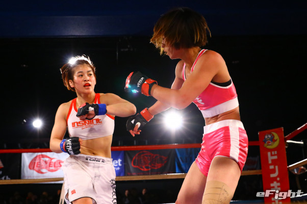 柔道家の本野美樹(左)が打撃も有効に使って長野美香に勝利