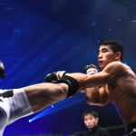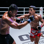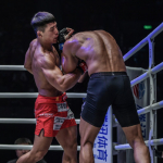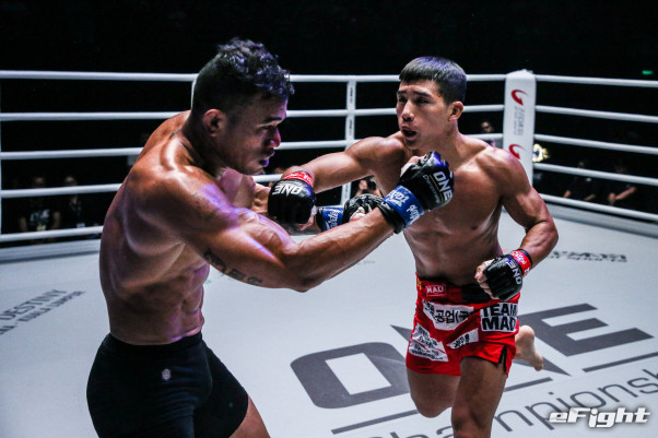 ユン・チャンミン(右)がパンチの連打で1R TKO勝ちを収めた
