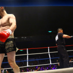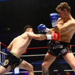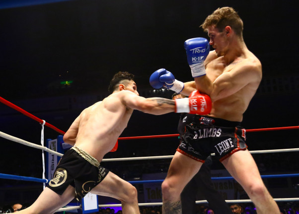 木村が力強くスピードのある右ストレートを打ち込む