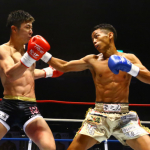 武居の右ストレートが玖村の顔面にめり込む