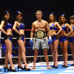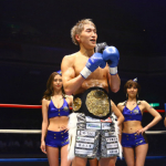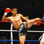 安保の胴廻し回転蹴りがゲーオの顔面にヒット
