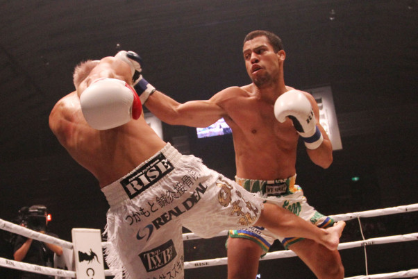 パワフルなパンチを出し続けたサンチアゴ(右)が勝利