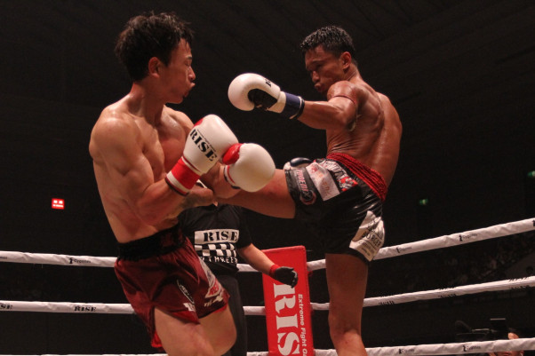チャンヒョン・リーとの3度目の対決を見事に制した梅野(左)