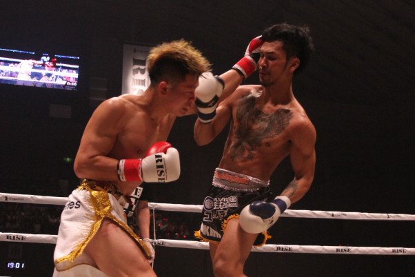 那須川(左)とスアキム(右)両者足を止め打ち合うシーンも