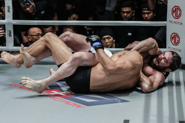 ナカシマ(上)が岡見の首をとり、あわや一本という危機に陥る