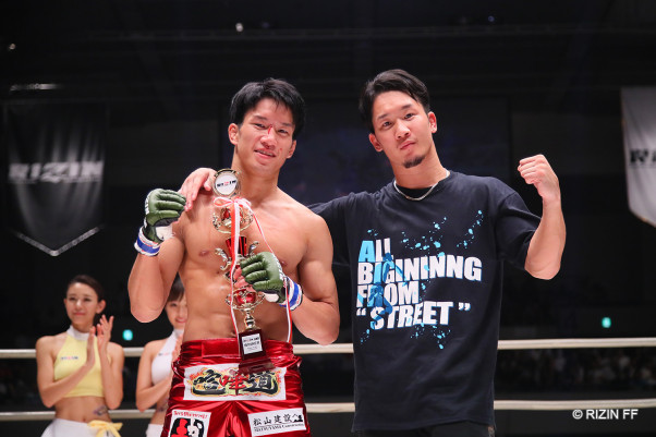 セコンドを務めた兄・未来(右)と
