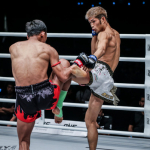 バックハンドブロー一撃で大ダメージを与え、ラッシュでシットンノーイを仕留めたMOMOTARO(左)