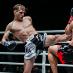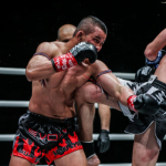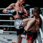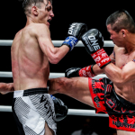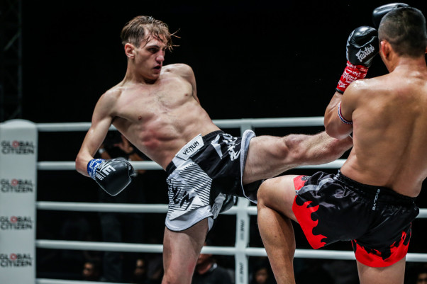 デルバール(左)は長身を活かした前蹴りで距離を保つ