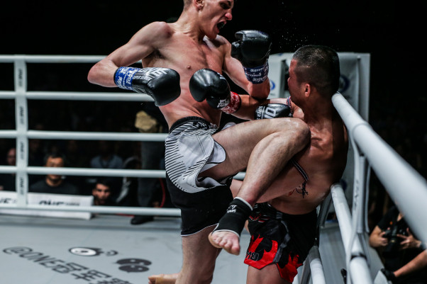 終盤には逆転を狙った飛びヒザも見せたデルバール(左)
