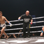 強烈な左を打ち込む京谷