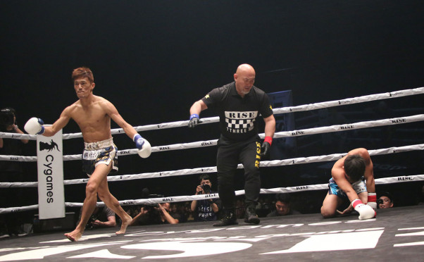 京谷の強打に金子がダウン