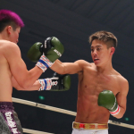 パンチの連打で前に出る現SB日本スーパーバンタム級王者の植山