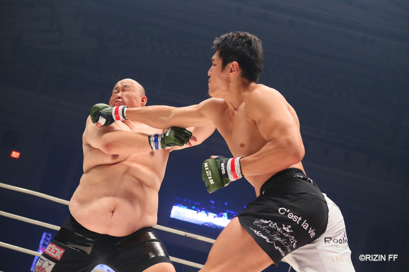 シビサイ(右)が163kgの巨漢・チャンヒに勝利