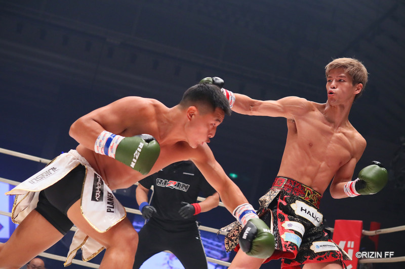 白鳥(右)が、大雅とのダウンの応酬を制した
