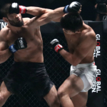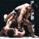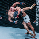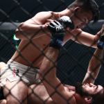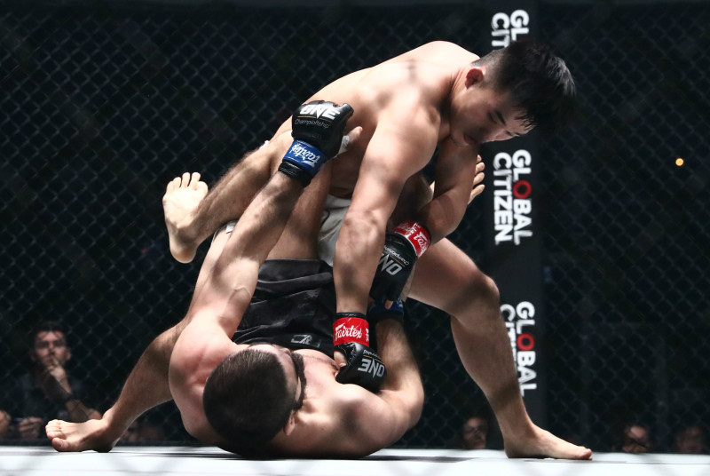 リー(上)はアサラナリエフの打撃をしのぎタックル、何度もテイクダウンを奪う