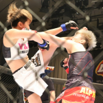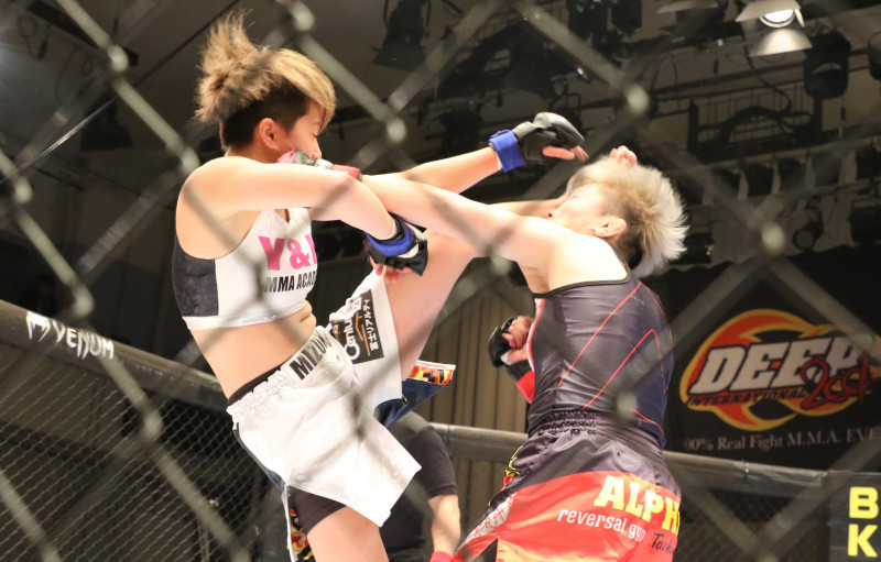 左ハイを放つ古瀬をKAIの左ストレートが捉える