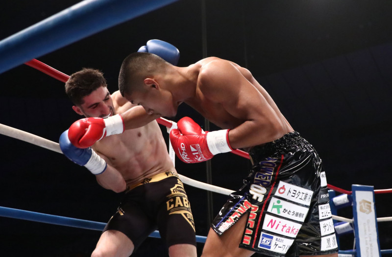 強打者のバレラ(左)をパンチで追い込む江川(右)