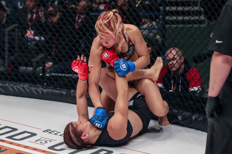渡辺がジョアニの顔にパウンドを叩き込む