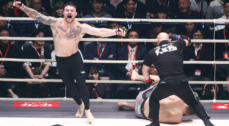 1Rで石井を倒したヒューンは歓喜