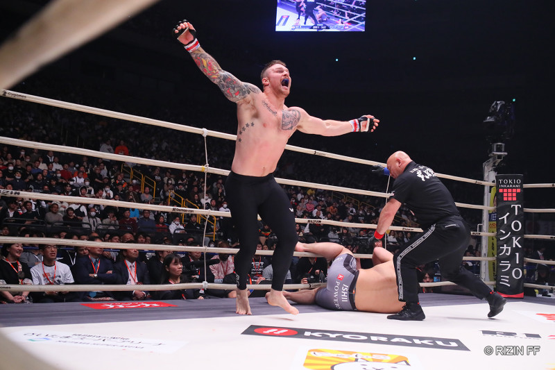 1Rで石井を倒したヒューンは歓喜