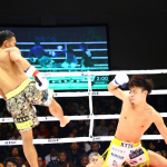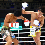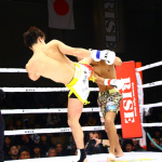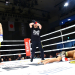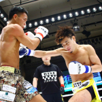 右フックで逆転KO勝利したKENTA(右)