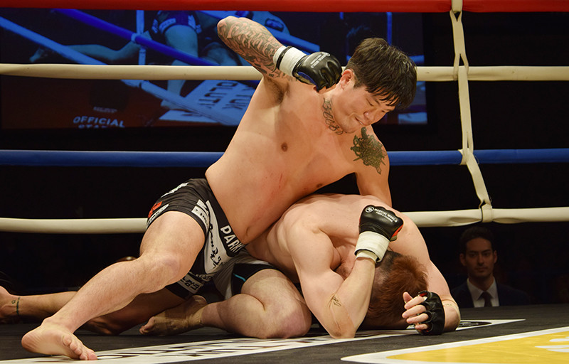 5分5ラウンドを戦い抜き、パーキ(上)が草に判定勝利