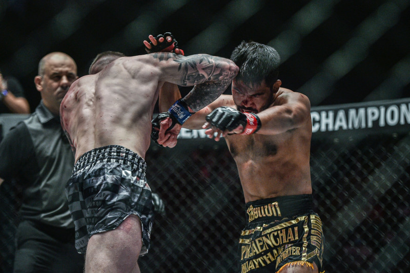 ショーが肘でロドレックの額を切った